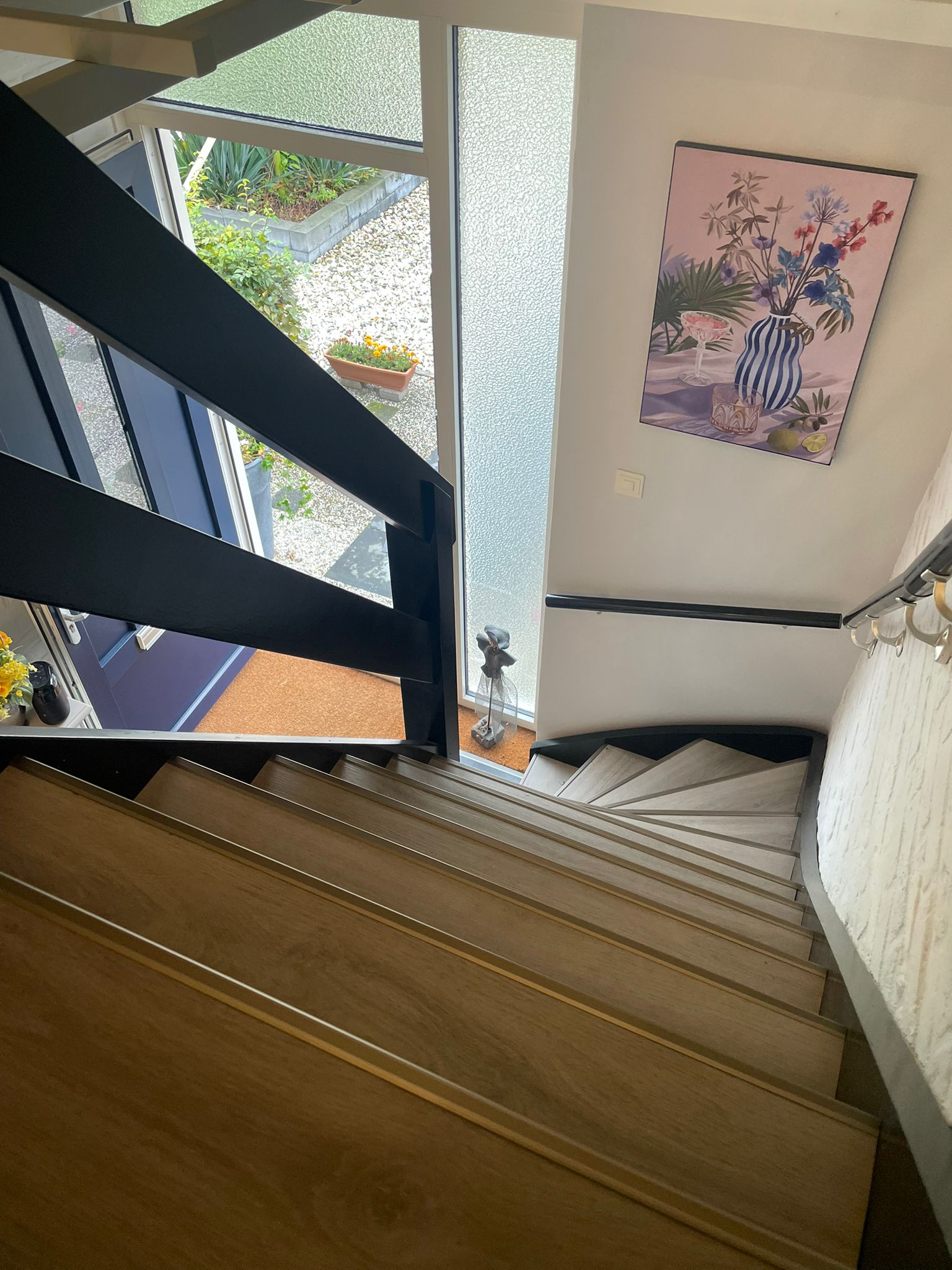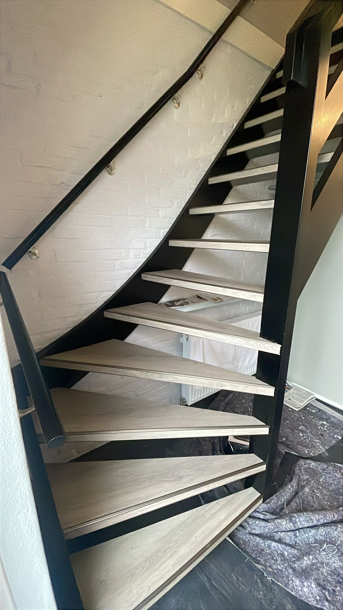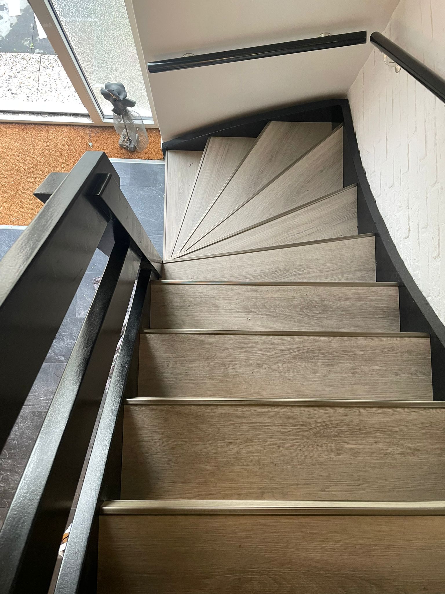 Naast het stijlvolle resultaat is deze trap ook een duurzame keuze. De pvc bekleding is sterk, onderhoudsvriendelijk en bestand tegen dagelijks gebruik, waardoor de trap er jarenlang mooi uit blijft zien.